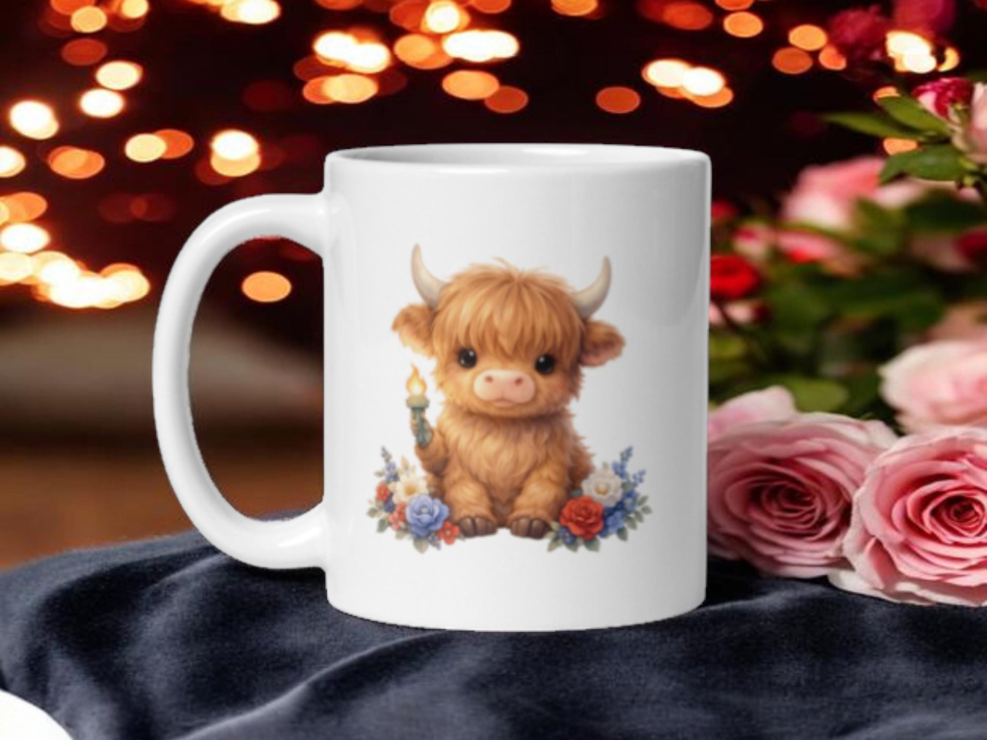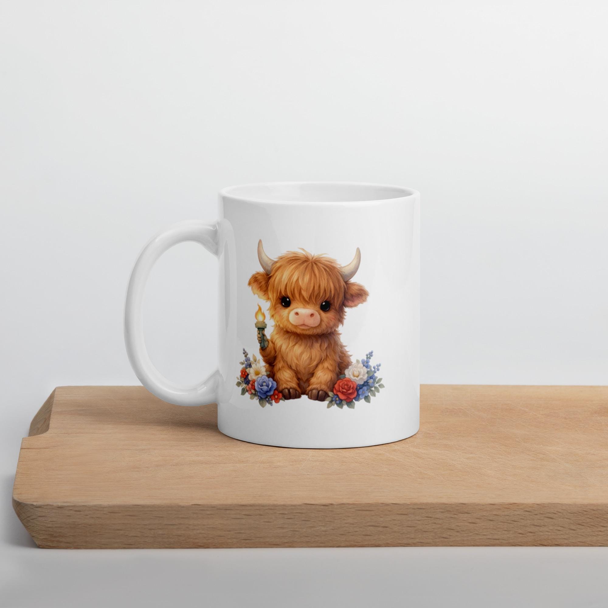Americute Highland Cow Mug Kawaii Patriotic Farm Coffee Cup