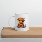 This Ameri-Cute highland cow mug blends soft cottagecore Americana with adorable kawaii farm vibes. Perfect for coffee lovers who want subtle red white and blue without loud graphics.