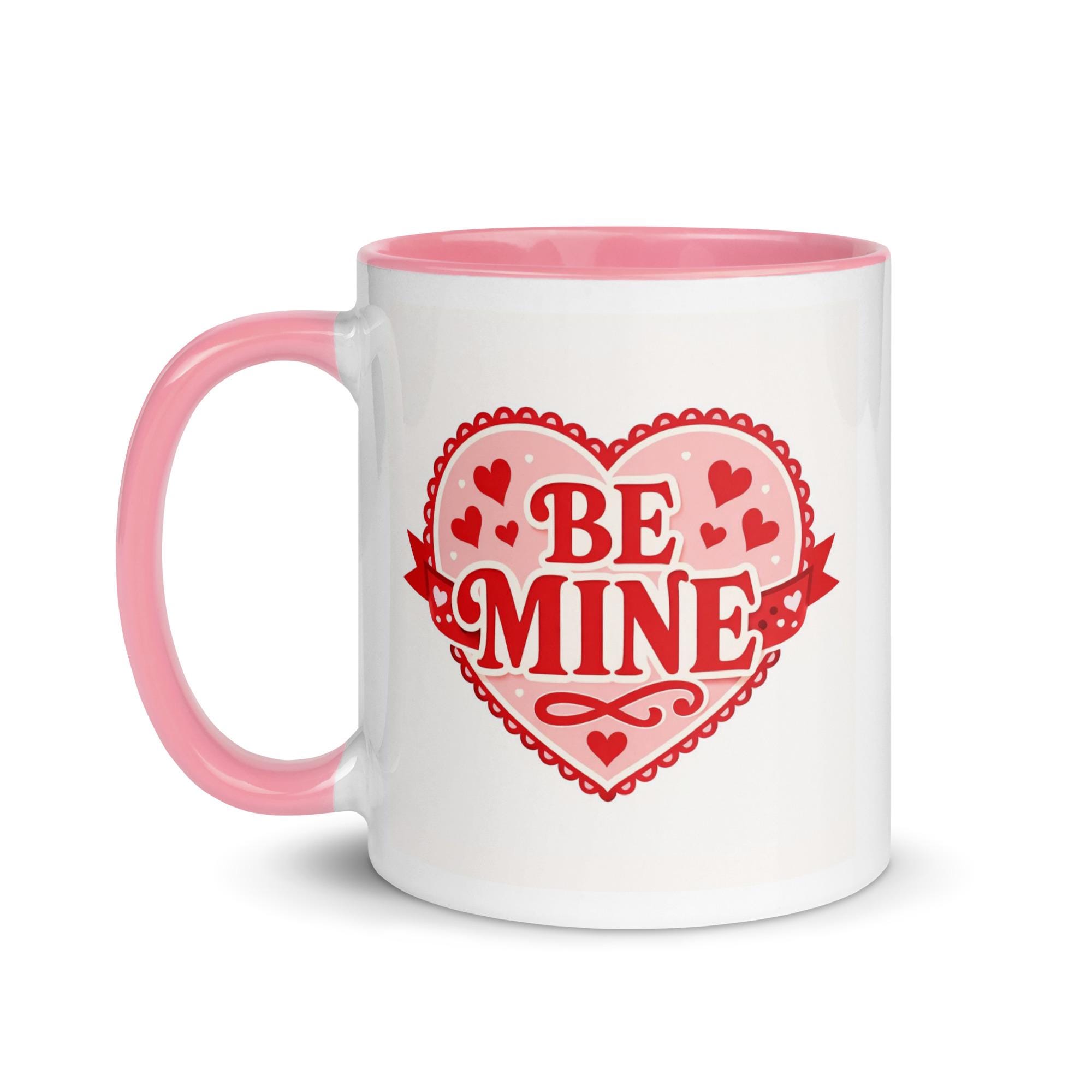 Be Mine Valentine Mug, Pink Handle, Romantic Coffee Cup