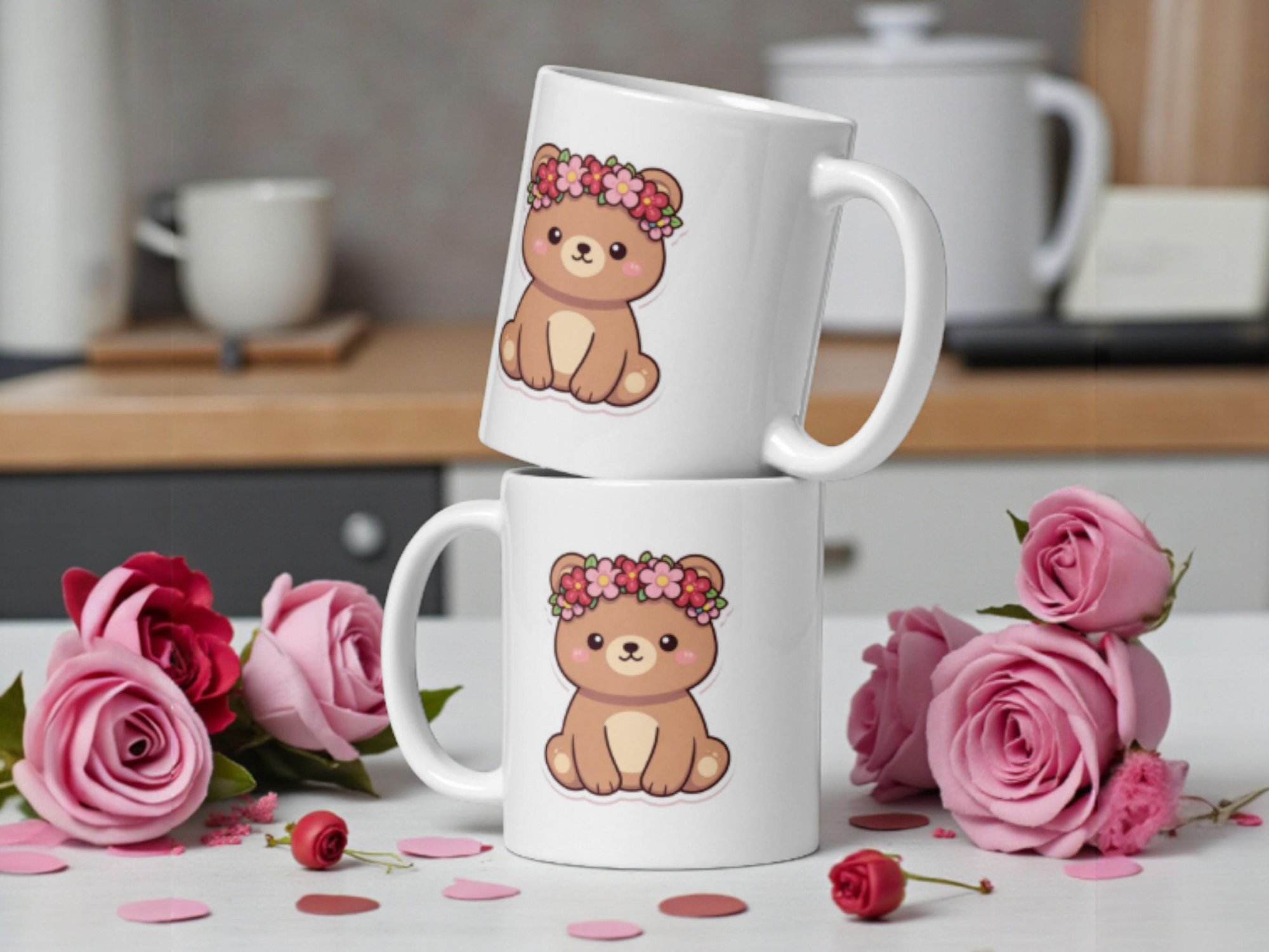 Kawaii Bear Mug with Flower Crown - Valentine Coffee Cup