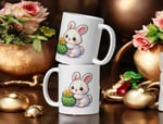 Kawaii Bunny Pot of Gold Mug: St. Patrick's Day Ceramic Coffee Cup