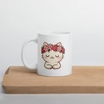 A calm and charming kawaii cat wearing a Valentine flower crown makes this mug perfect for self-love, friends, or cozy mornings.