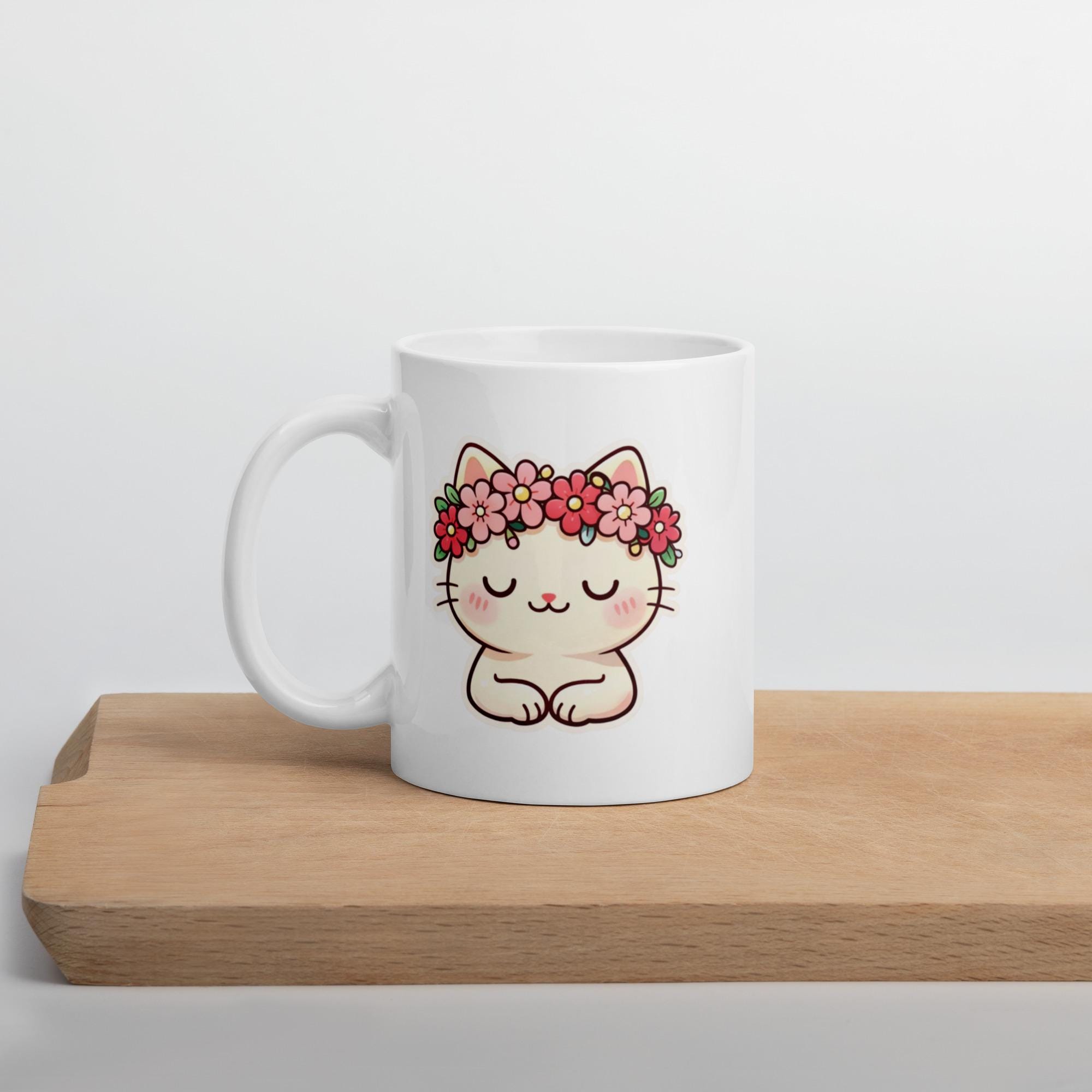 Kawaii Cat Mug: Valentine Flower Crown Coffee Cup