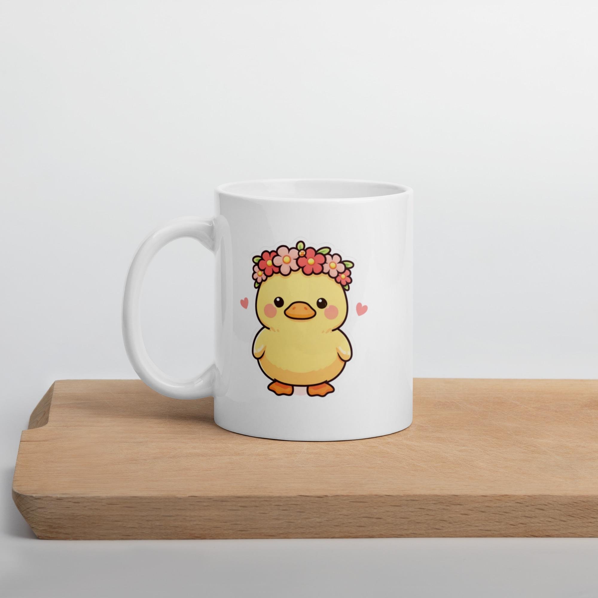Kawaii Duck Valentine Mug, Flower Crown Coffee Cup