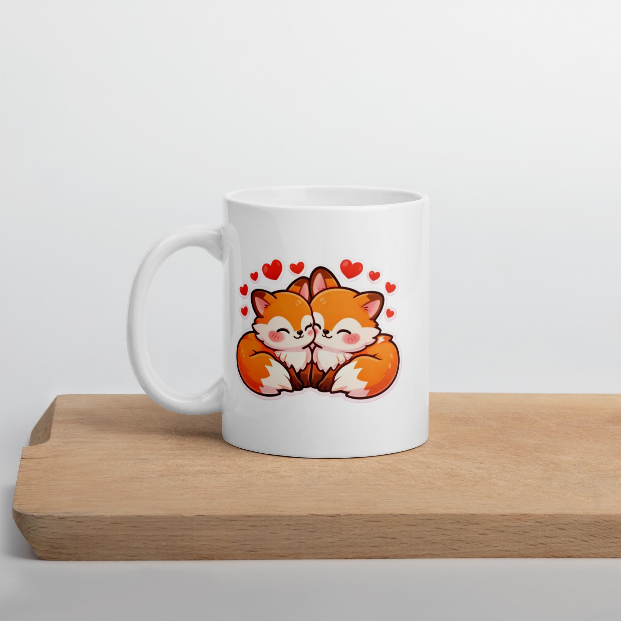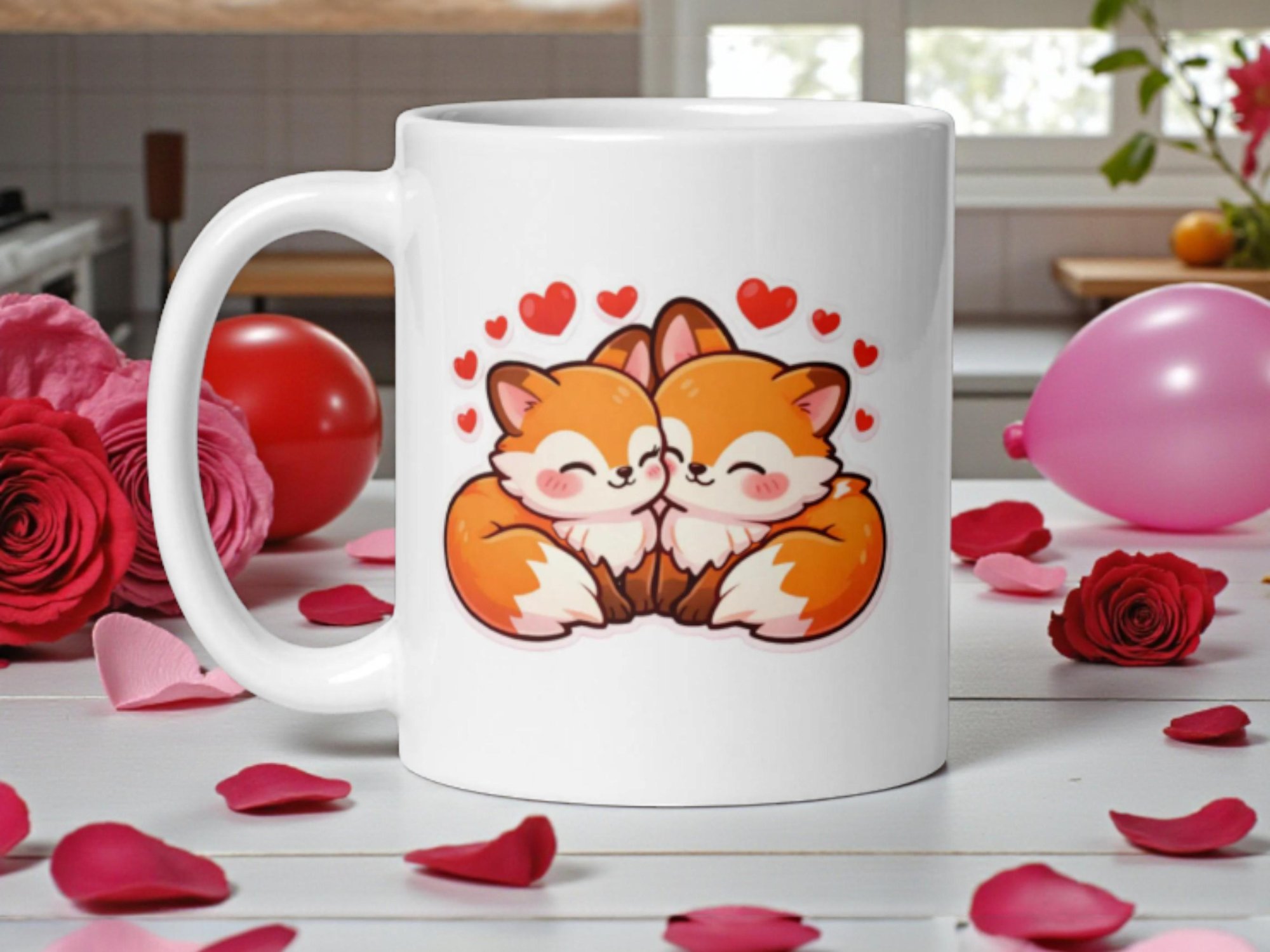 This adorable kawaii fox Valentine mug features a sweet fox couple cuddling together. Soft, romantic, and irresistibly cute, it’s perfect for couples who love woodland animals and cozy coffee moments.