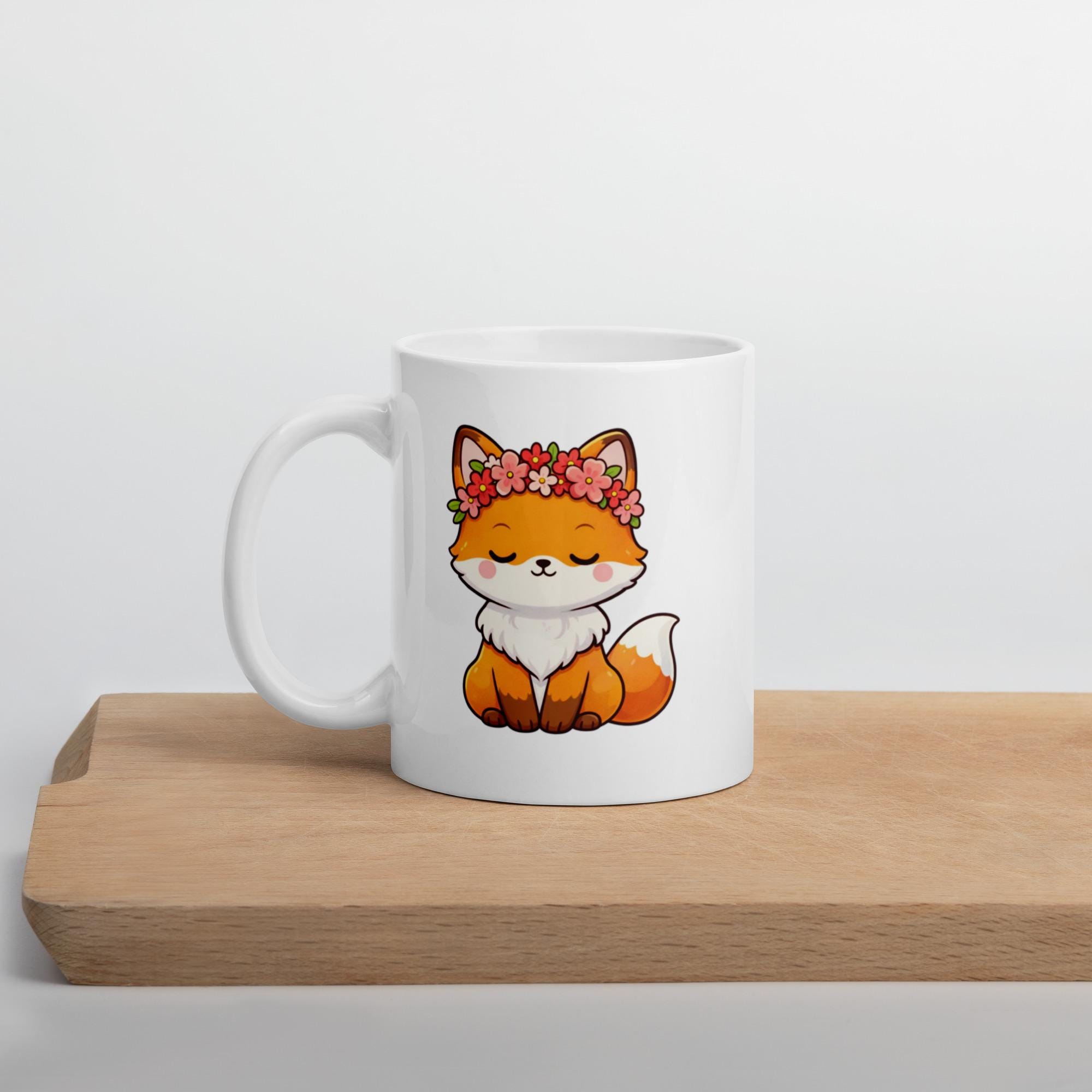 Kawaii Fox Mug with Flower Crown - Valentine Coffee Cup