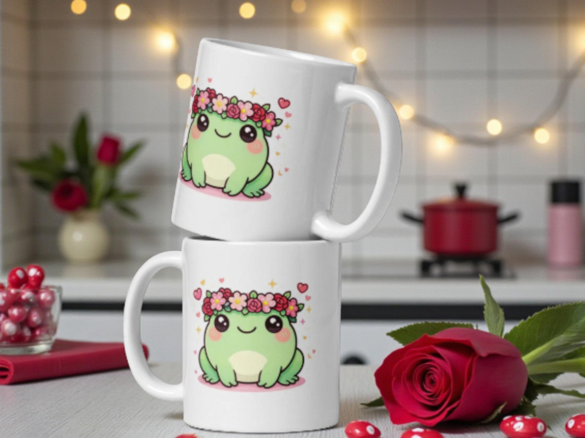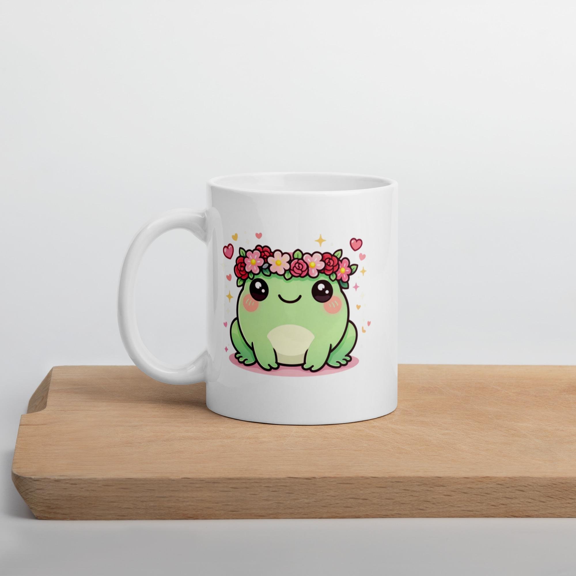Kawaii Frog Mug: Valentine Flower Crown Coffee Cup