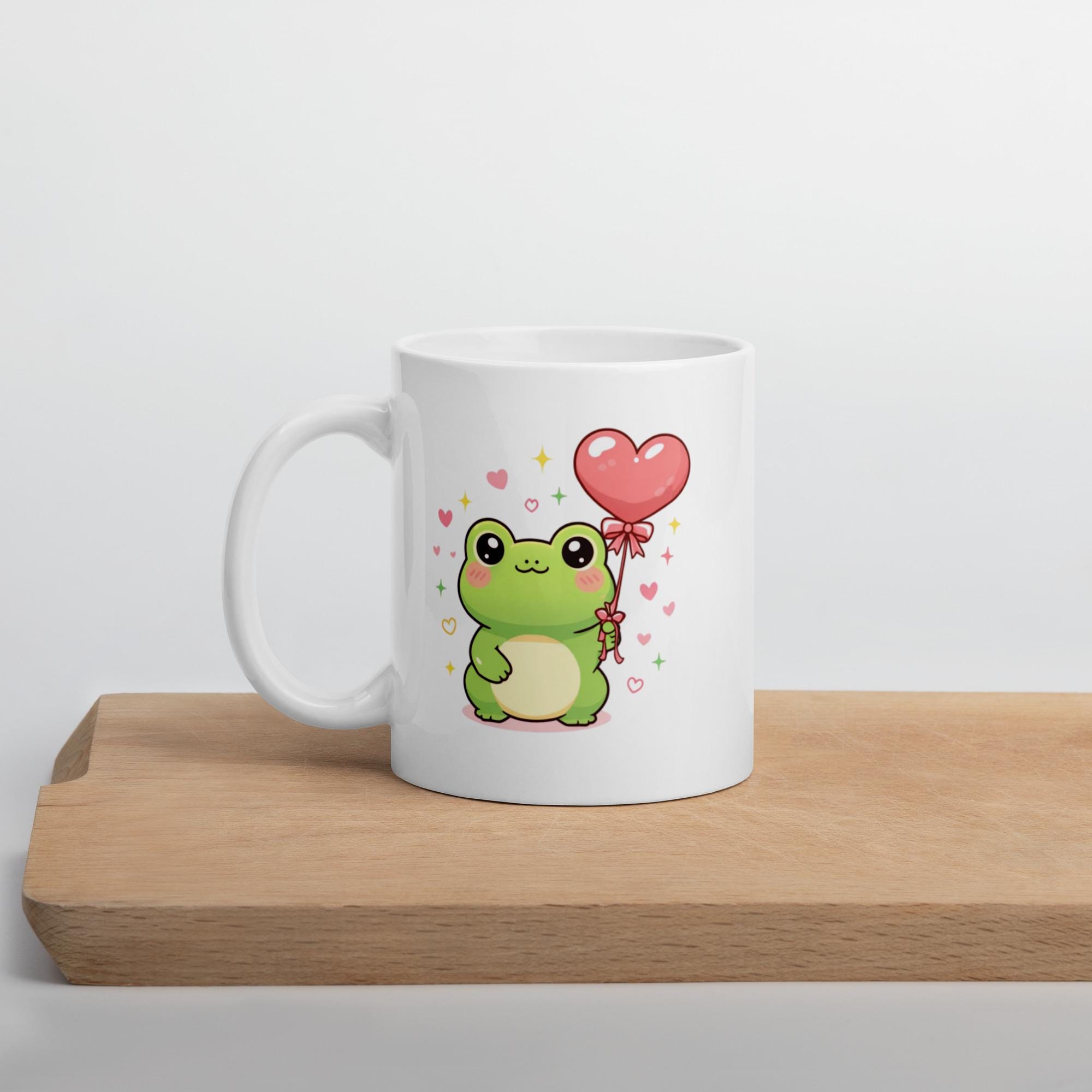 Kawaii Frog Valentine Mug: Heart Balloon Coffee Cup