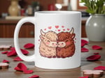Kawaii Highland Cow Couple Mug, Valentine's Day Gift