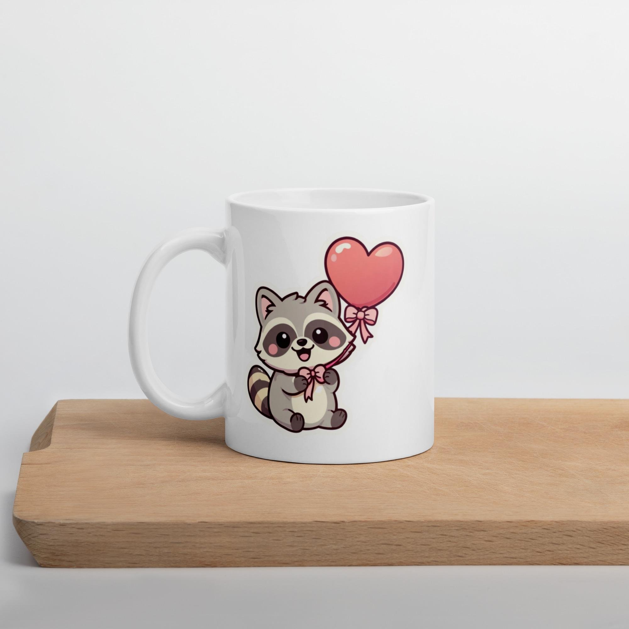 Kawaii Raccoon Heart Balloon Mug - Valentine's Day Gift