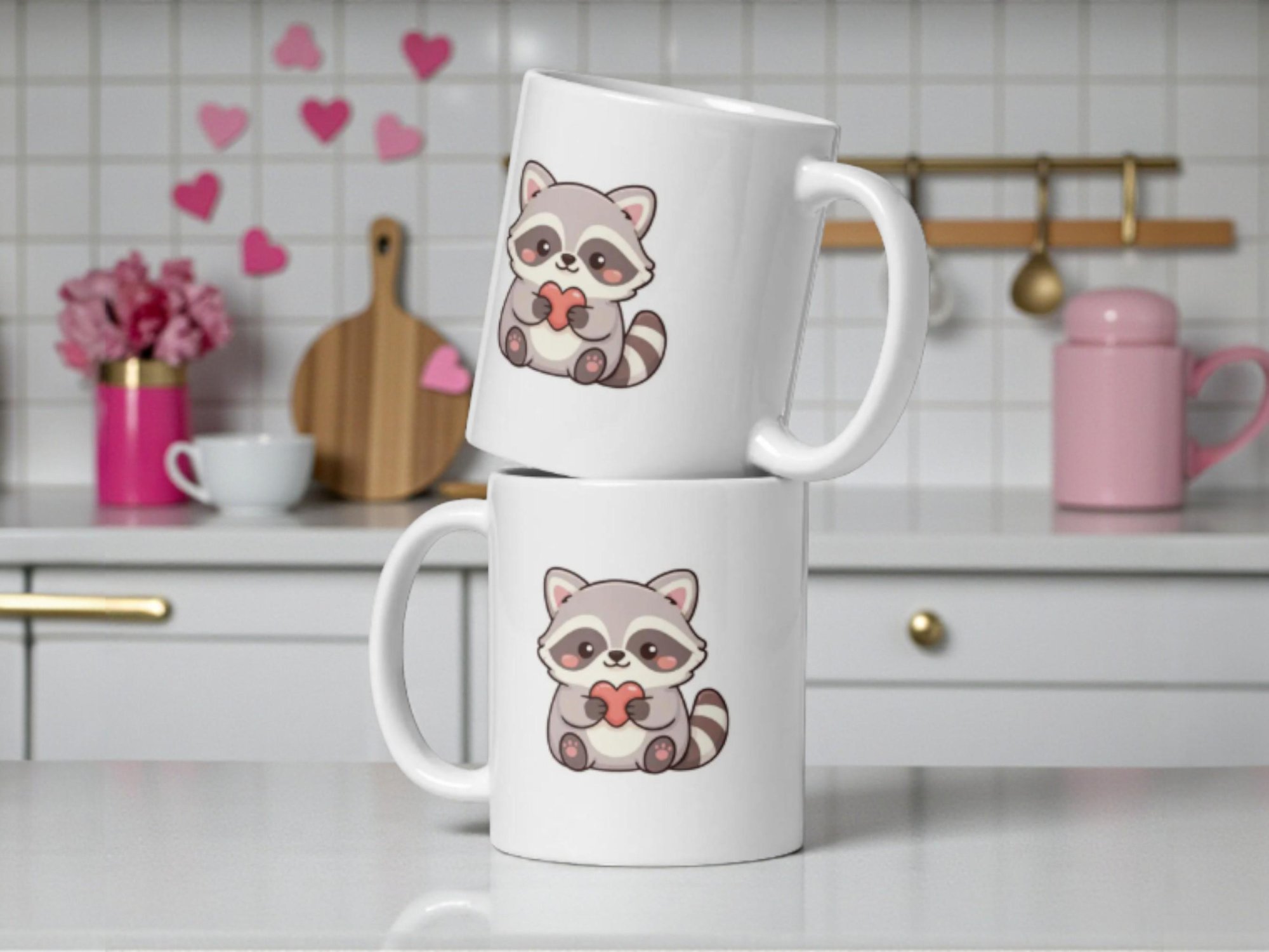 Kawaii Raccoon Valentine Mug, Coffee Cup Gift