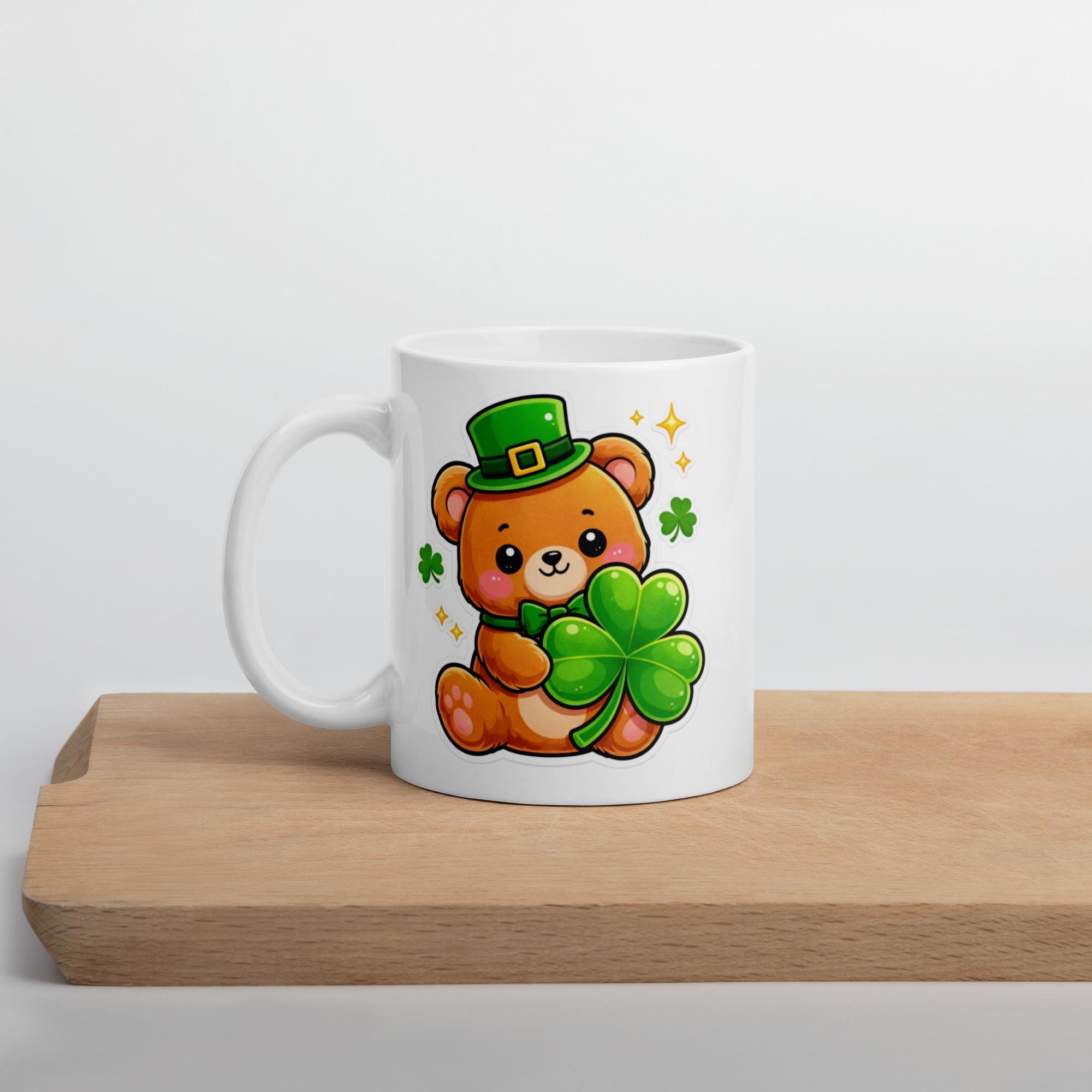 Kawaii Shamrock Bear Mug: St. Patrick's Day Teddy Coffee Cup