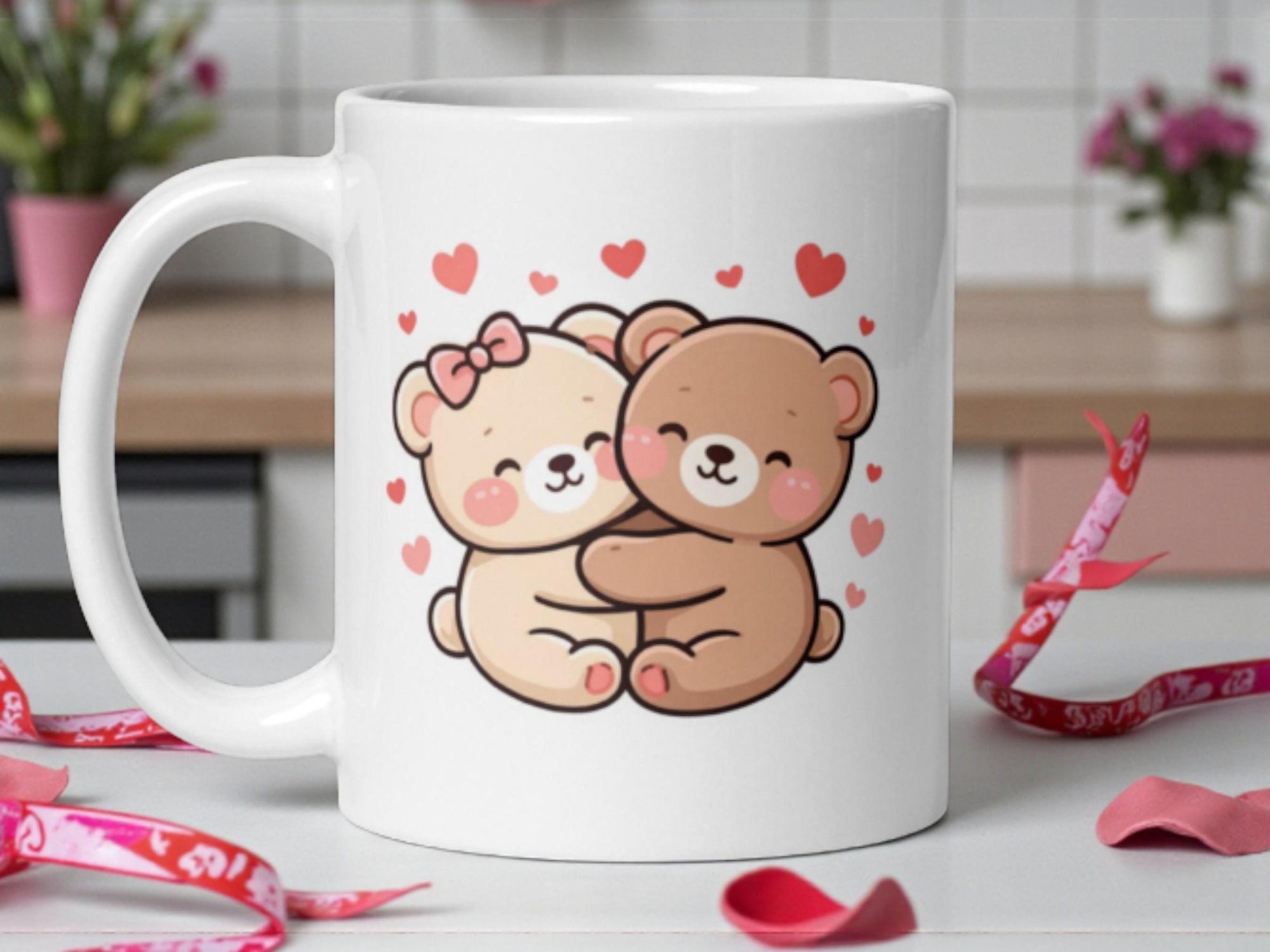This adorable kawaii bear mug features a sweet teddy bear couple hugging together. Soft, romantic, and irresistibly cute, it’s perfect for couples who love cozy animal designs and heartfelt gifts.