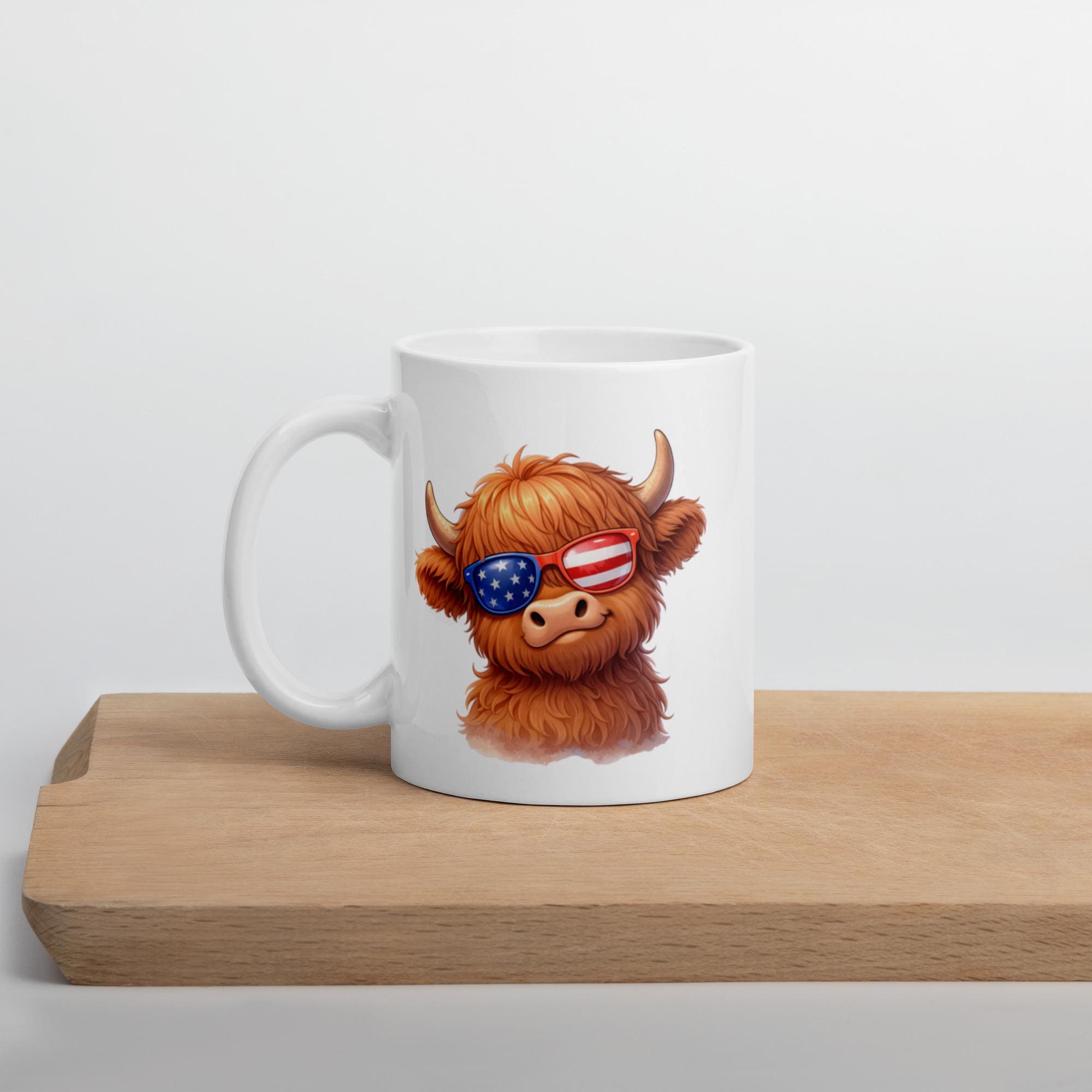 Liberty Looks Good on Me Highland Cow Patriotic Coffee Mug