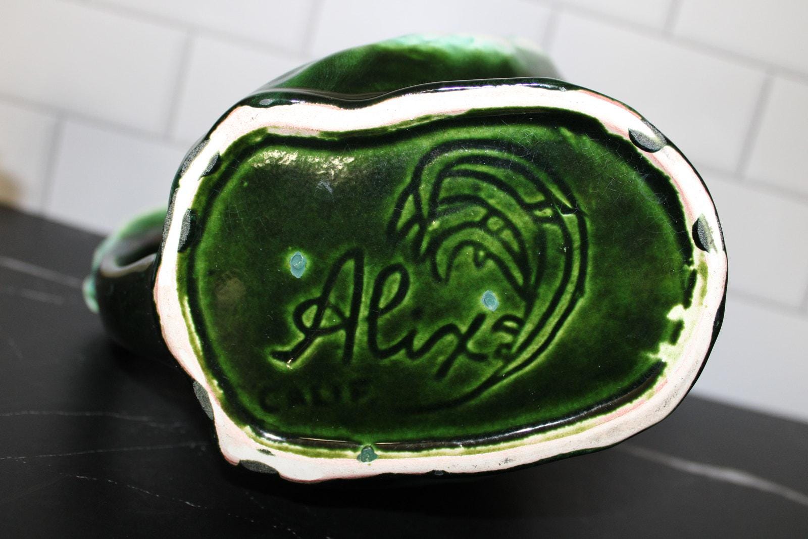 Rare Vintage California Alix Studio Ceramic Green Rooster 3-Piece Pitcher 1950's