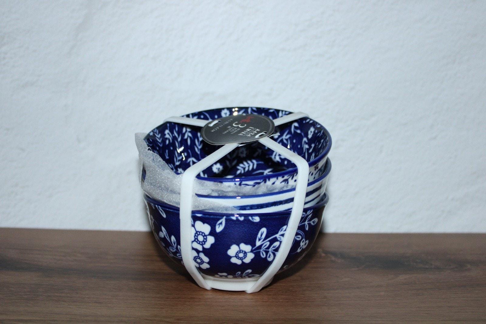 Set of 3 Blue Heritage Floral Emika Ceramic Rice Tidbit Appetizer Dip Sauce Bowls