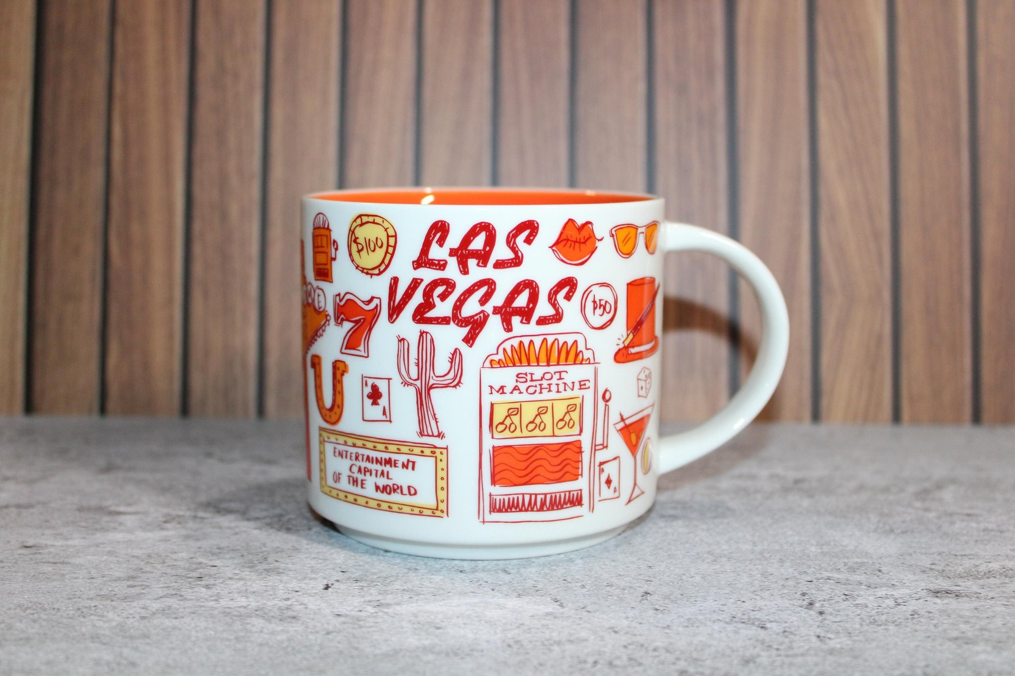 Authentic Starbucks LAS VEGAS Been There Series Across the Globe Coffee Mug. This 14oz ceramic cup features colorful artwork of Las Vegas icons — from the famous Strip and neon signs to dice, cards, and desert imagery.