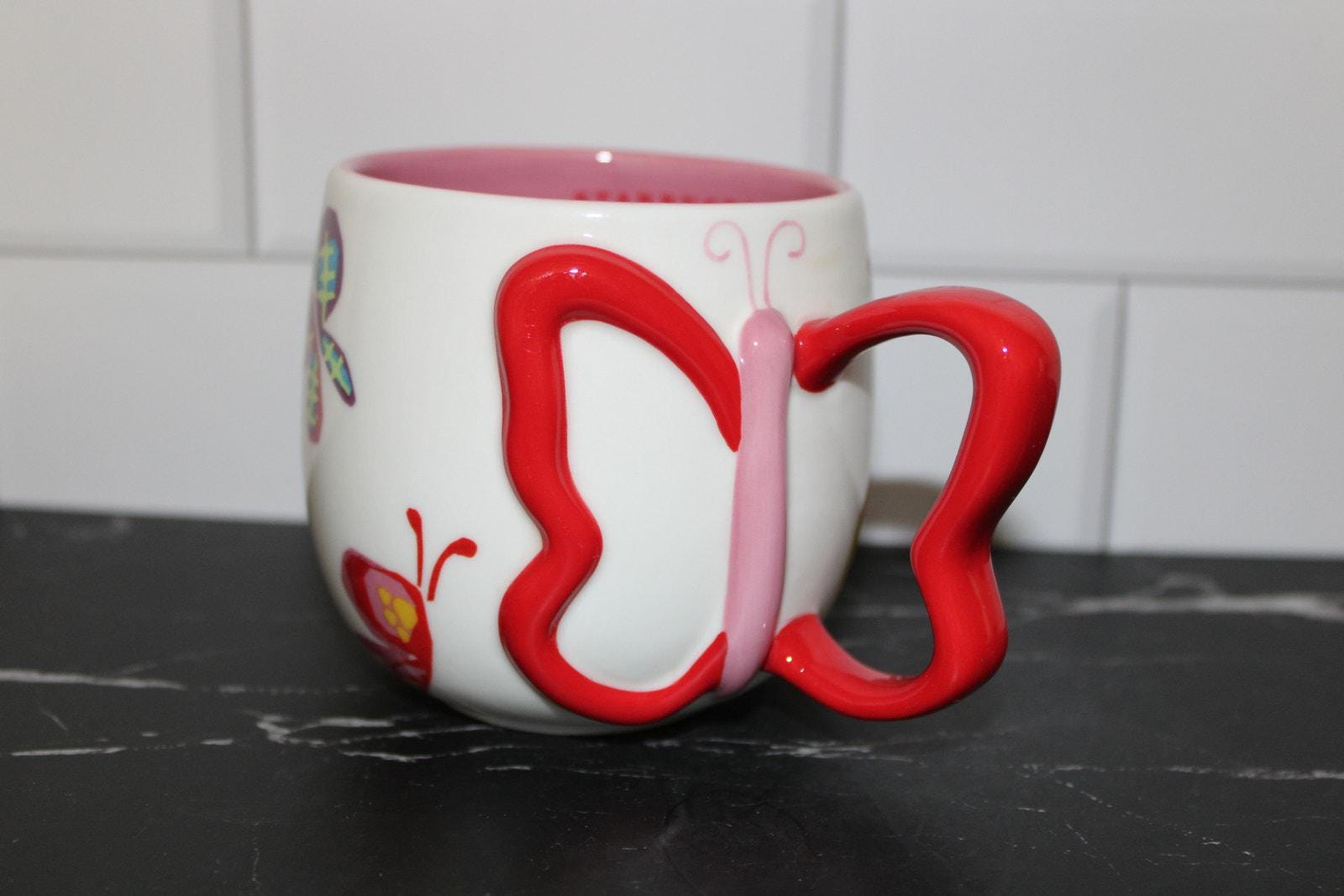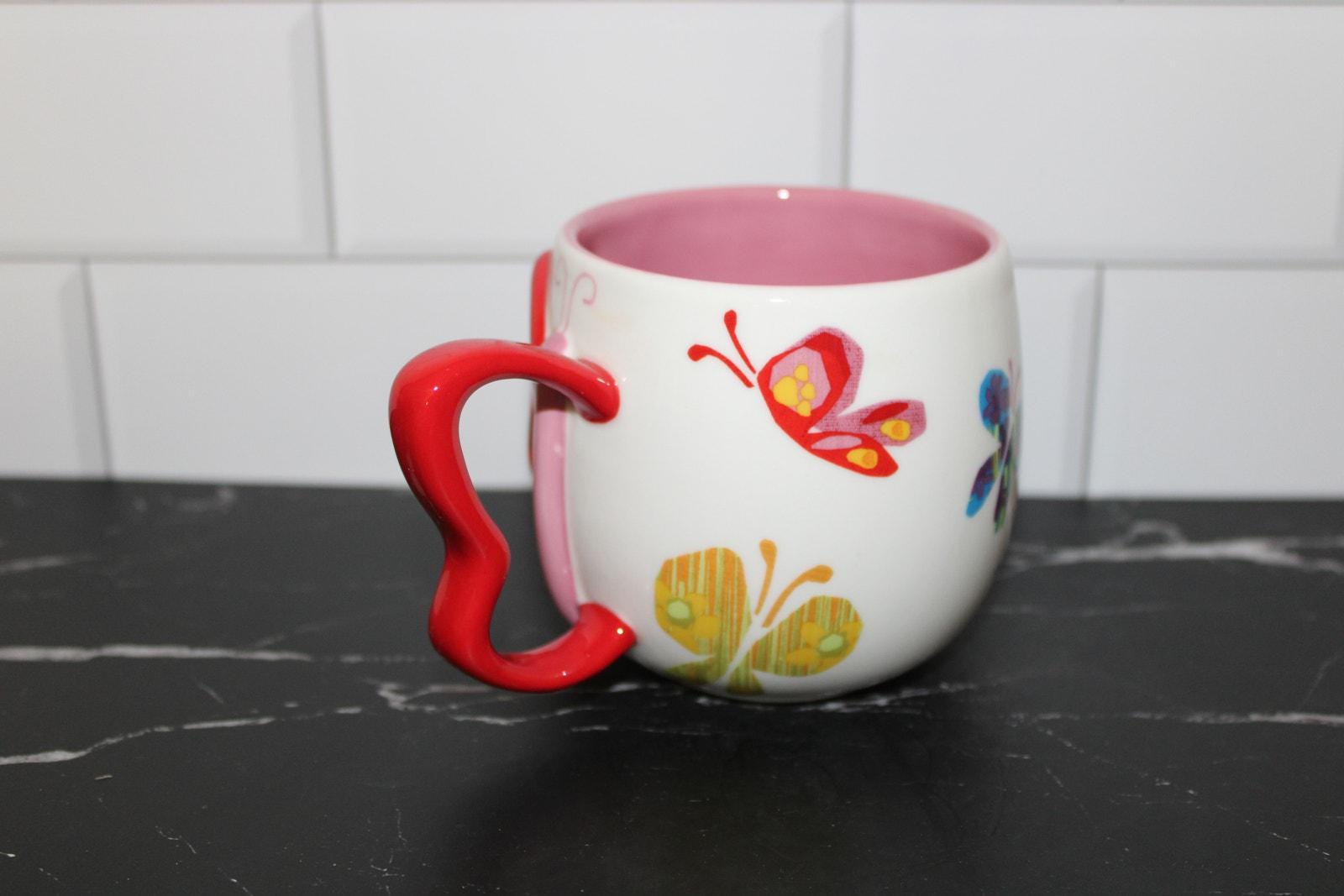 Starbucks Butterfly Coffee Mug With Red Butterfly Shaped Handle