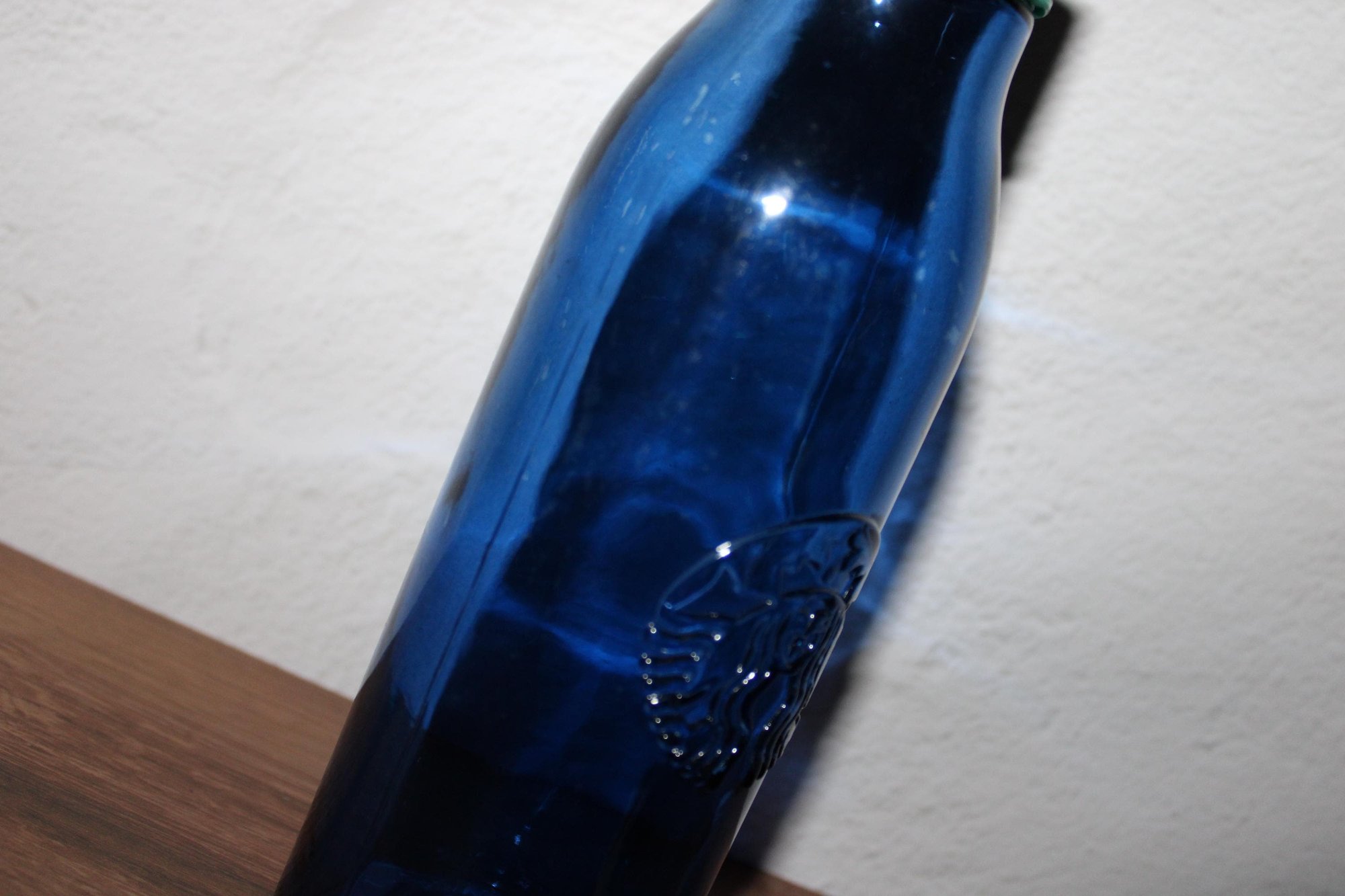 Starbucks Cobalt Blue Siren Recycled Glass Water Bottle 20oz w Cap EUC Scratches