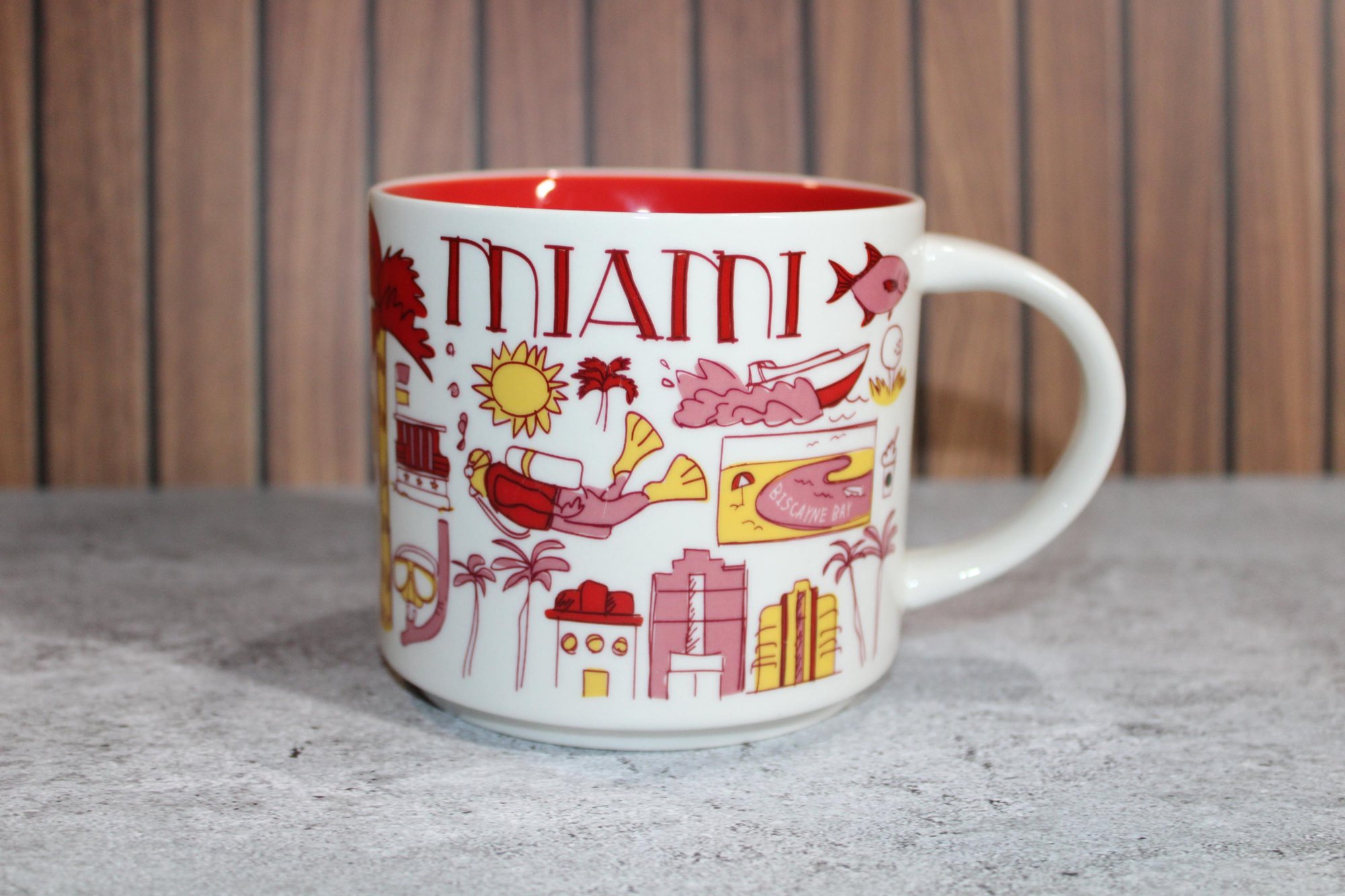 Bring a little sunshine home with this Starbucks Miami Been There Series 14 oz Ceramic Mug. This collectible features the signature Been There artwork — palm trees, Art Deco buildings, sunshine, shoreline scenes, and iconic Miami vibes in bold tropical tones.