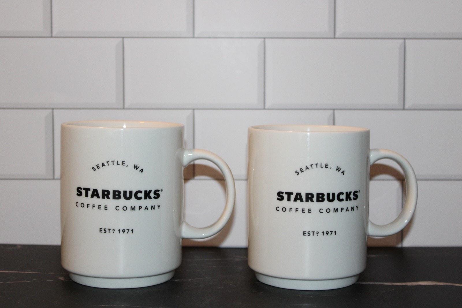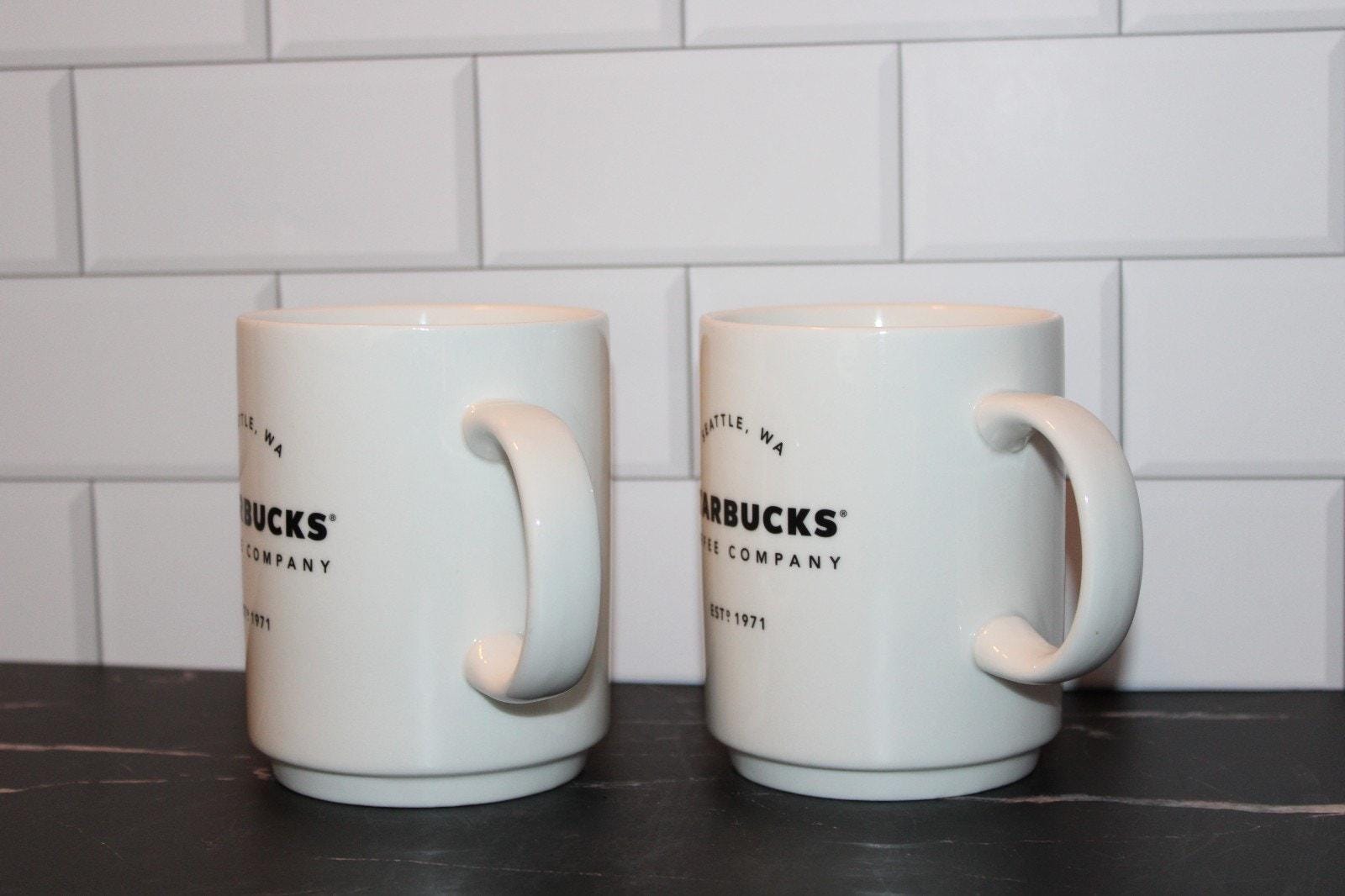 Starbucks Seattle WA Coffee Mug Set of 2 14oz Stackable White