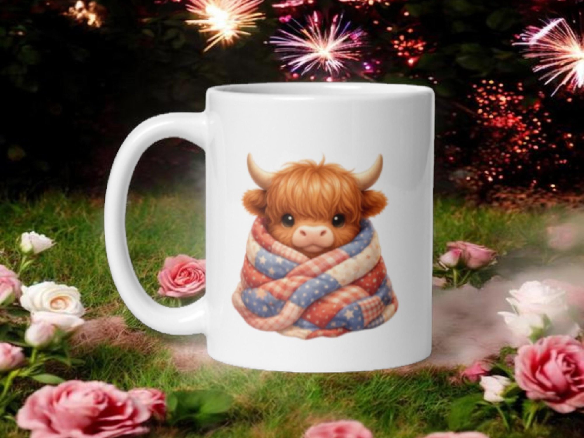 Stars Stripes and Snuggles Highland Cow Patriotic Coffee Mug