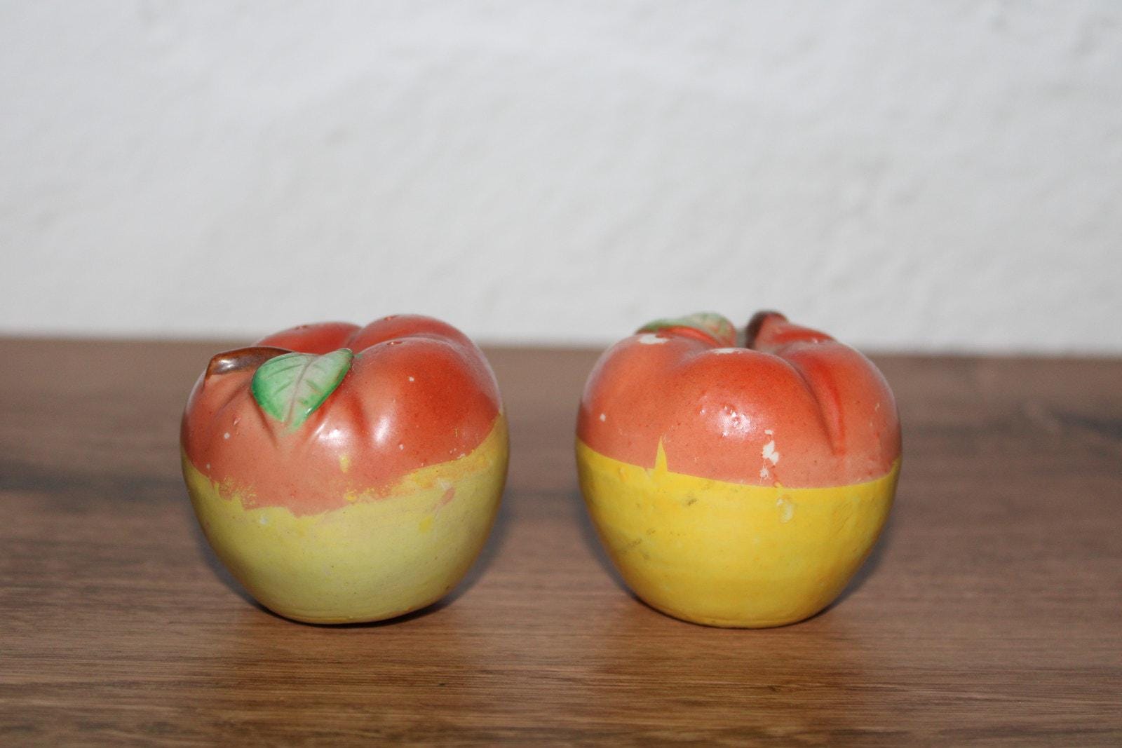 Vintage ceramic apple salt and pepper shaker set with classic mid-century design.